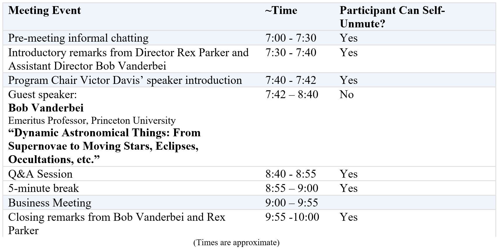 How to Participate (Links) Zoom& YouTube Live Amateur Astronomers Association of Princeton is inviting you to a scheduled Zoom meeting. Join Zoom Meeting Topic: AAAP March Meeting-Robert Vanderbie, Princeton Univ, Stellar Dynamics Time: March10th, 07:00 PM Eastern Time (US and Canada) Meeting ID: 853 2157 6662 Passcode: 001601 Join instructions