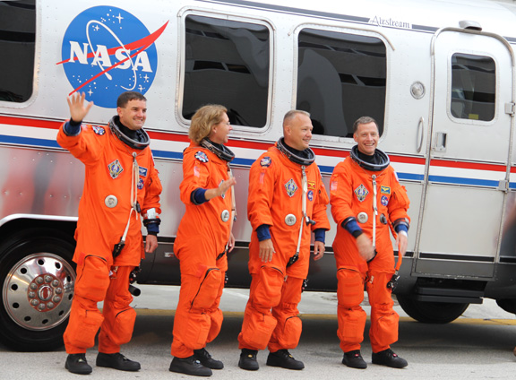 In the final hours before launch. the crew departed crew quarters, lingered long to wave goodbye to the cheering crowd of thousands of gathered NASA employees, officials and media and then sped off to Pad 39A in the Astrovan to be strapped into their waiting seats of eternal adventure. I’ll never forget these stirring and exhilarating moments of Launch Day.