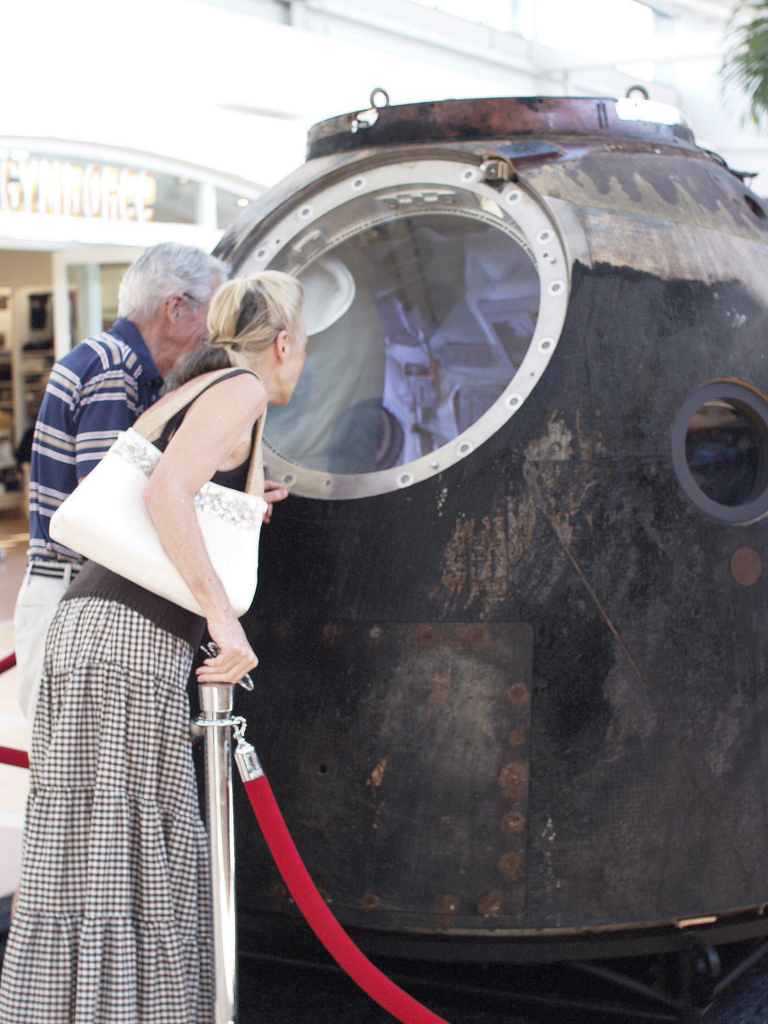 Shoppers at Princeton Marketfair examine Soyuz TMA-6’s descent module on display until October 18, 2011