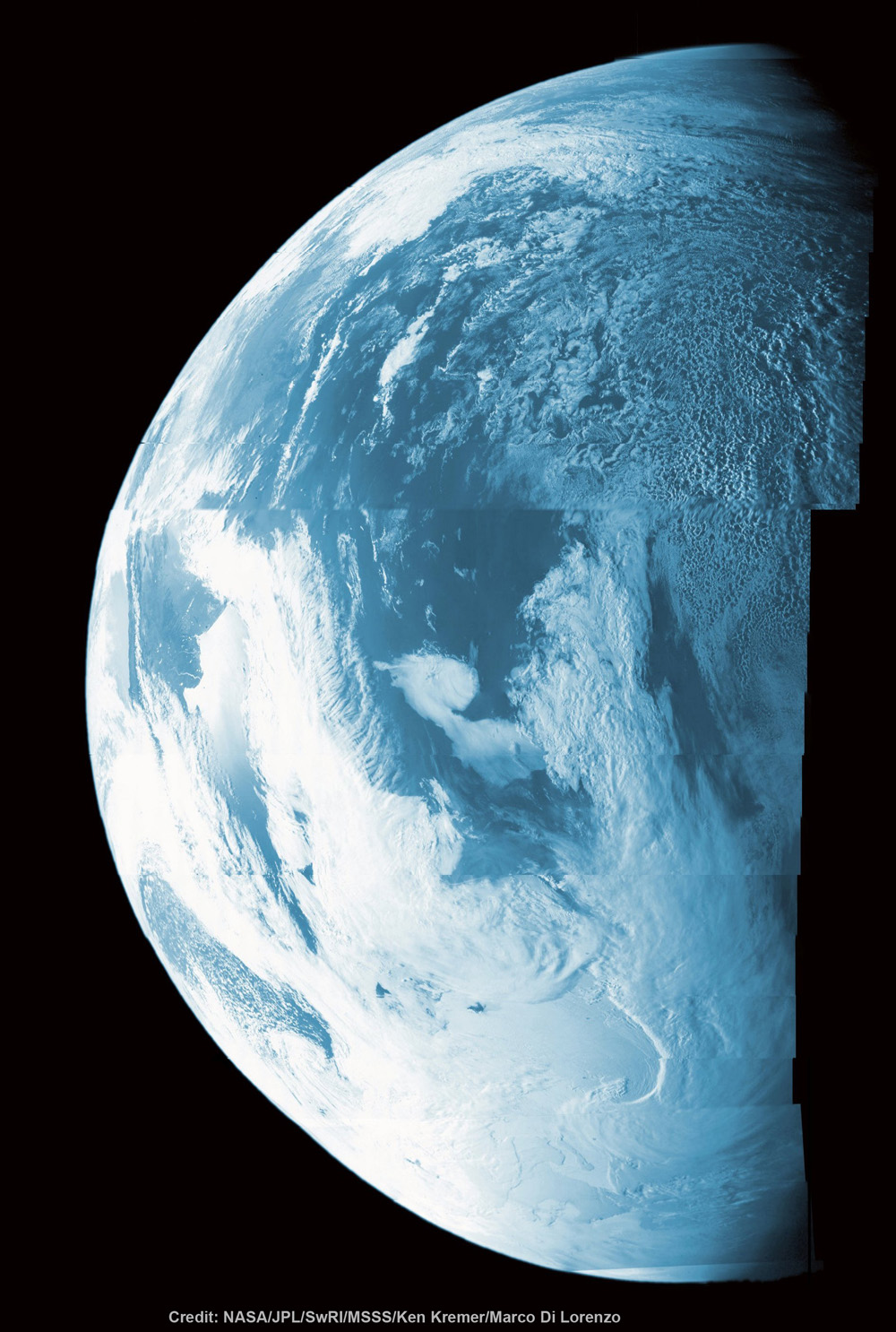 This false color mosaic assembled from raw images taken by the Junocam imager shows more than half of Earth’s disk over the coast of Argentina, South America and the South Atlantic Ocean as NASA’s Juno probe slingshotted by on Oct. 9, 2013 for gravity-assisted acceleration to Jupiter. Juno will arrive at Jupiter on July 4, 2016.Astronomy Outreach by Dr. Ken Kremer