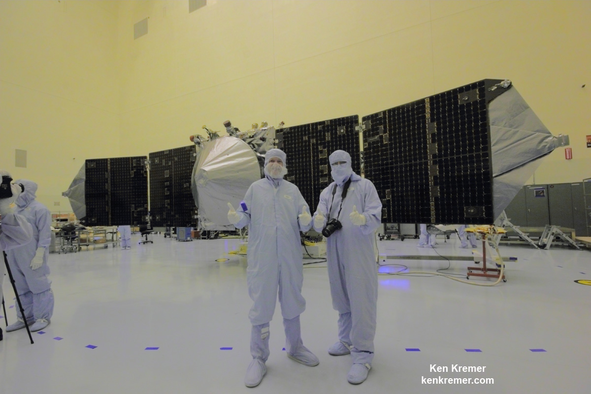 I personally inspected MAVEN inside the clean room at the Kennedy Space Center with Bruce Jakosky just prior to the partial shutdown of the US government on October 1. During the ultra-rare viewing opportunity, the solar panels were fully unfurled.