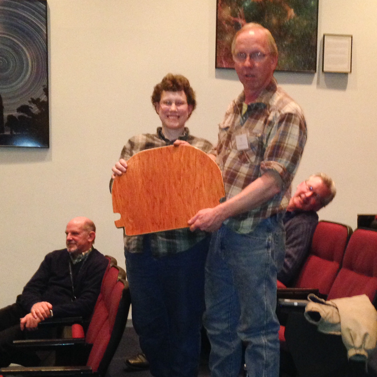 Simpson Observatory – Gene Ramsey reported that he has trained two new keyholders that will be assigned to teams. One other person is going through training, but the snow, cold weather and lack of access to the observatory interrupted his training. The duty roster for the upcoming season will be issued shortly. The observatory is now closed for all uses until further notice. Due to the cold weather the floor has heaved and pushed up the wall between the computer room and the main room, which prevents opening the roof. He anticipates that the floor and wall will return to normal when the ground thaws. Gene demonstrated a new observing chair that he designed and gave it to Jennifer and David Skitt in appreciation for their work at the observatory. Ludy D’Angelo reported that he checked out the stereo and that it works fine except the CD player needs a new power cord.