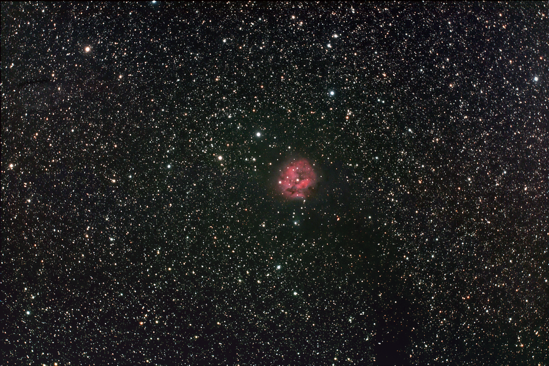 The next day I aligned/stacked and calibrated the light subs on my PC. Again, this is where Bill was able to give me more advice. So once the PC was finished, I had a calibrated image of the Cocoon Nebula. At this point, you can adjust the image to your liking and taste. I typically use Photoshop to do this post-processing work and try not to spend too much time working the image. Here is my final result.