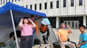 May saw the AAAP table turn up at two events. At the first event, Super Science Saturday in Trenton, our club was represented by Gene Ramsey, Jennifer and Dave Skitt and myself, as custodian of the club’s table banner. Even though the day started with rain, it did stop. Lots of people turned out to talk to us and take free literature offered by Astronomy Magazine and the AAAP. Despite the continuing cloud cover that thwarted our efforts to view the Sun, everyone that came to our table went away pleased and more knowledgeable about the AAAP.