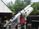 Takahashi Mewlon 250 acquired by AAAP mounted on the Paramount ME alongside the historic Hastings refractor at the Observatory Jul 30. Working on the scope are Gene Ramsey, Tom Swords, and Rex Parker.