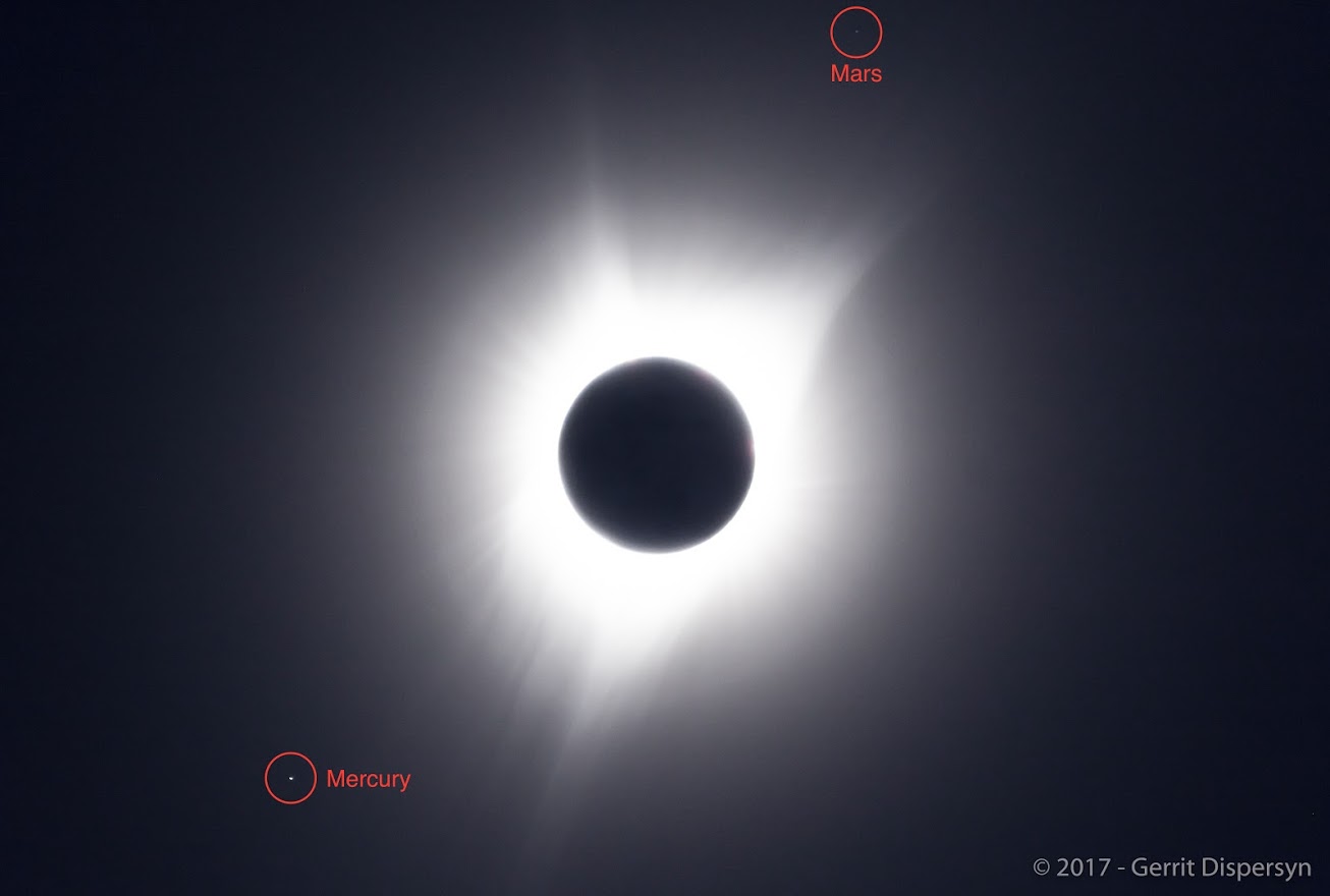 Eclipse Oregon 2017, Mercury and Mars annotated. Credit: AAAP Member Gerrit Dispersyn