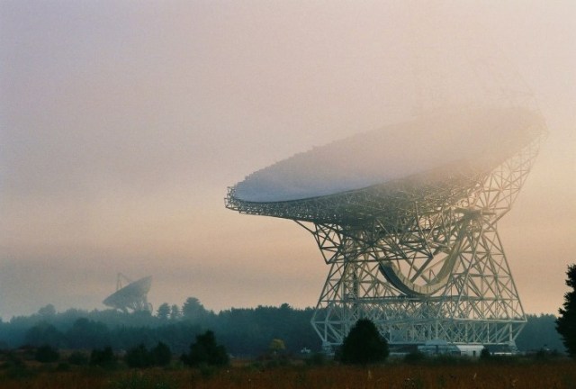 Given below is a replica of a telescope built by another radio astronomy pioneer named Grote Reber. The dish moves up and down in vertical direction using the curves in the left and the right. The whole contraption moves on rollers in a circle on the ground. This way, the telescope can be positioned to see any specific part of the sky.It is only a monument, not part of a working telescope.