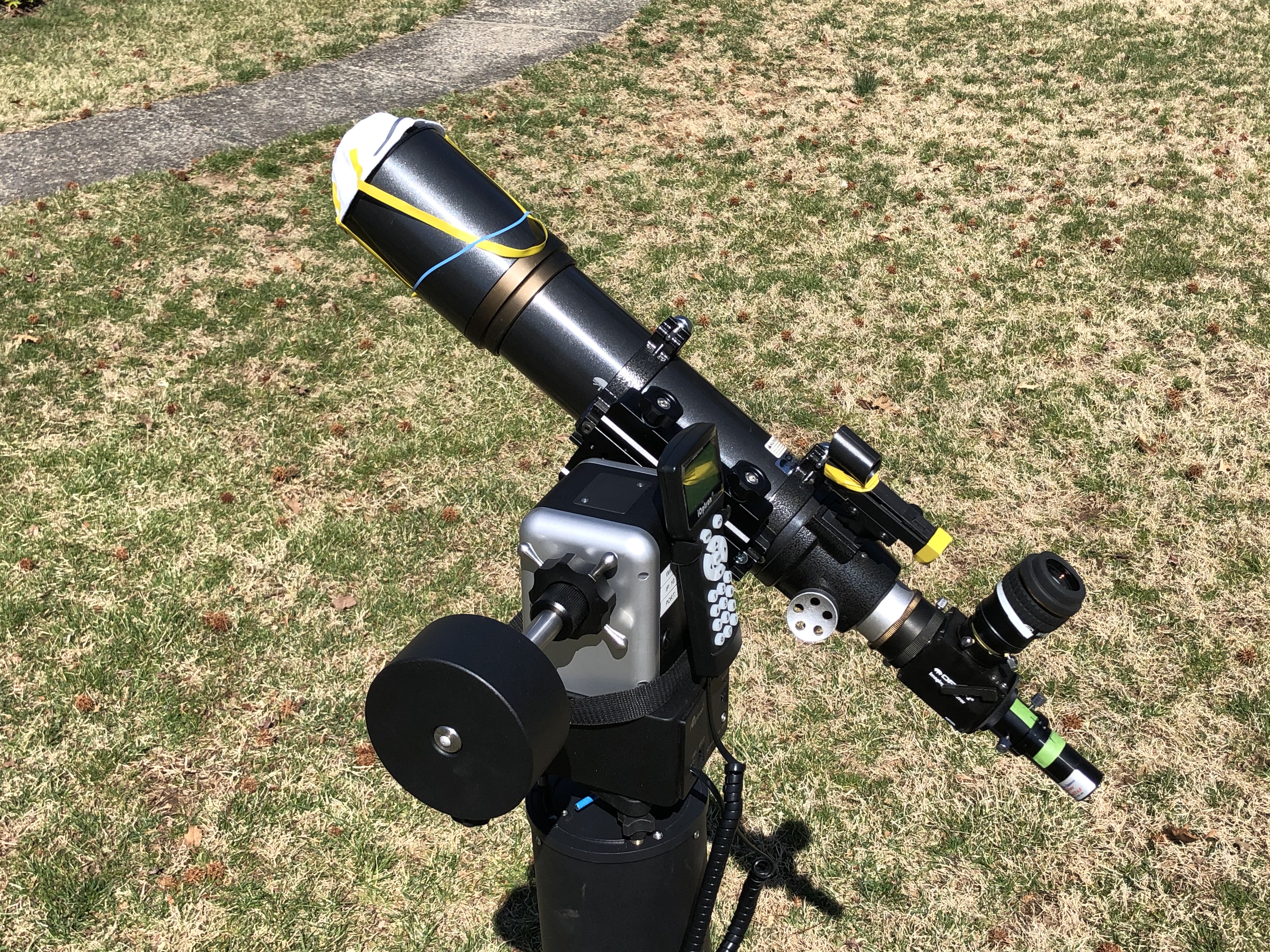 AAAP’s Outreach Telescope: Orion ED80 refractor complete with “N95 Focus Mask” and Starlight Xpress Ultrastar Color Camera on iOptron AZM Pro mount.