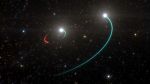 It’s about 1,000 light-years away, or roughly 9.5 thousand, million, million km, in the Constellation Telescopium. That might not sound very close, but on the scale of the Universe, it’s actually right next door. Scientists discovered the black hole from the way it interacts with two stars – one that orbits the hole, and the other that orbits this inner pair…more