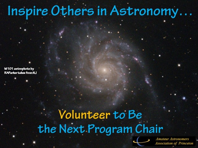 It’s been fantastic for me to work with Ira over the past 5 years. He’s done the job at a very high level with innovation and creativity. He’s carried out the role with deep consideration of appropriate topics and identified and coaxed important astronomers to speak to us at our monthly meetings. We’ve had some of the best speaker presentations ever in the history of AAAP during these 5 years. Please contact me soon if you are interested. And I will help you form the committee so you’re not going it alone.