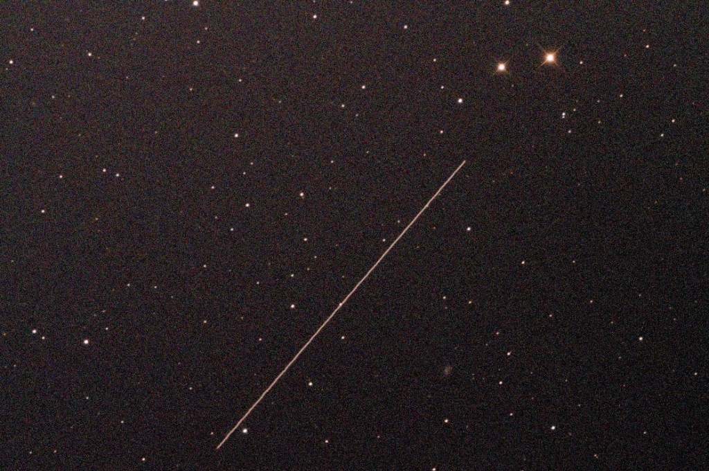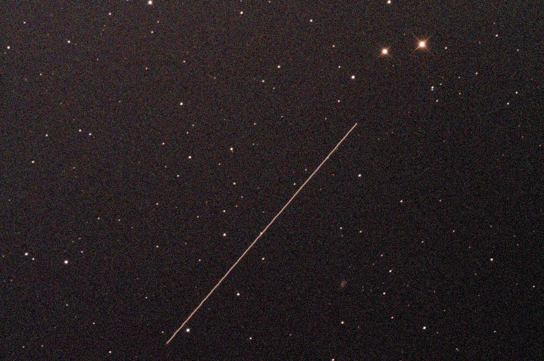 Just how fast is “blazed across the sky”? With the tools of the modern amateur astronomer, we ought to be able to solve this. I measured the distance in pixels movement in the image above using trigonometry (Pythagoras theorem) and used it to calculate angular velocity in radians per minute. Then I used the formula for angular speed ω = θ/t (where ω is angular speed, θ is angle of rotation in radians, t is time); the known scale of the optical system (0.46 arcsec per pixel);and the formula to convert angular to linear velocity: v = r ω. From the data and these formulae I calculated the approximate speed of the asteroid to be 42,500 miles per hour. According to earthsky.org, professional astronomers calculated the speed at 43750 mile per hour, so my error was less than 3%. To give some perspective, the moon in its orbit speeds along at 2288 miles/hr. The asteroid flew by the earth at almost 19 times the speed of the moon!
