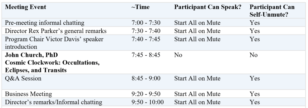 For the Q&A session, you may ask your question using Zoom’s chat feature or you may unmute yourself and ask your question directly to the speaker. To address background noise issues, we are going to follow the rules in the table below regarding audio. If you are not speaking, please remember to mute yourself. You are encouraged, but not required, to turn your video on.