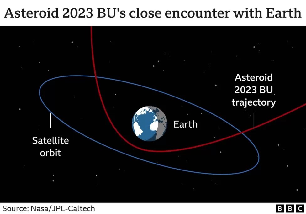 Asteroid 2023 BU: Space rock passes closer than some satellites Now it’s over, we can say it: a biggish asteroid passed by Earth a short while ago. About the size of a minibus, the space rock, known as 2023 BU, whipped over the southern tip of South America just before 00:30am GMT…more