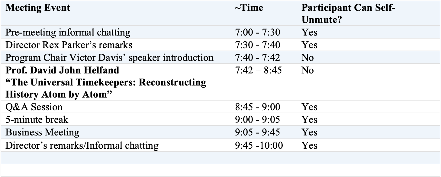 You may choose to attend the meeting in person or participate via Zoom or YouTube as we’ve been doing for the past few years. (See How to Participate below for details). Due to security concerns, if you log in before the host has set up internet connectivity in Peyton Hall, you may need to wait in the Waiting Room for a few minutes until the host is prepared to admit you into the meeting. You’ll need to unmute yourself to make comments or ask questions. It’s polite, though not required, for you to enable your camera so other participants can see you. A week or so after the meeting, the video of the lecture and Q&A will be posted on AAAP’s public YouTube channel.