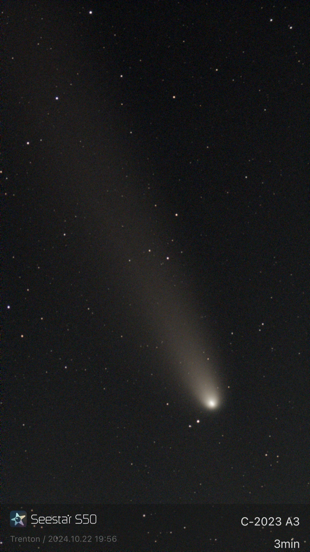 For many reasons I’m sure, I have been unable to observe any comet, either visually or with photography, with the naked eye, binoculars, iPhone cameras, DSLRs, telescopes with eyepieces, or telescopes with cameras. This condition has prevailed for decades. Recently everybody reports seeing C-2023 A3, and some show me pictures they took on their phones quite effortlessly, even neighbors who are virtually never astronomers. It truly makes me feel as if I were the victim of some nefarious “no comets for you!” curse.