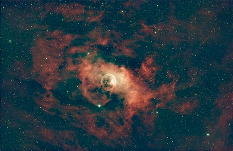 The Bubble Nebula NGC 7635 is located in the constellation Cassiopeia 7100 light year from Earth. It is 7 light years across and is a glowing molecular cloud due to a very hot central star. The bubble molecular cloud is expanding at 4 million miles per hour. This image was captured with a Celestron C9.25 telescope with a 0.7x reducer, ZWO ASI2600MC Pro camera, and Optolong L-Ultimate filter. PixInsight was used for post processing 250 light frames of 300 sec each for an integration of 20.8 hours over a course of 4 nights.