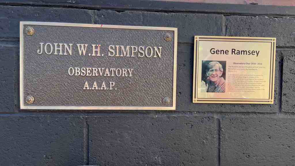 It was a busy day for all of us; there was never a dull moment. My wife, Jennifer, helped us close out the day, directing people to telescopes, answering questions and handing out brochures. Jennifer’s arrival provided Bill Murray and I a few moments to hang the Gene Ramsey memorial plague. While completing the task, we spoke well of Gene, remembering his contributions to the club and our personal lives.