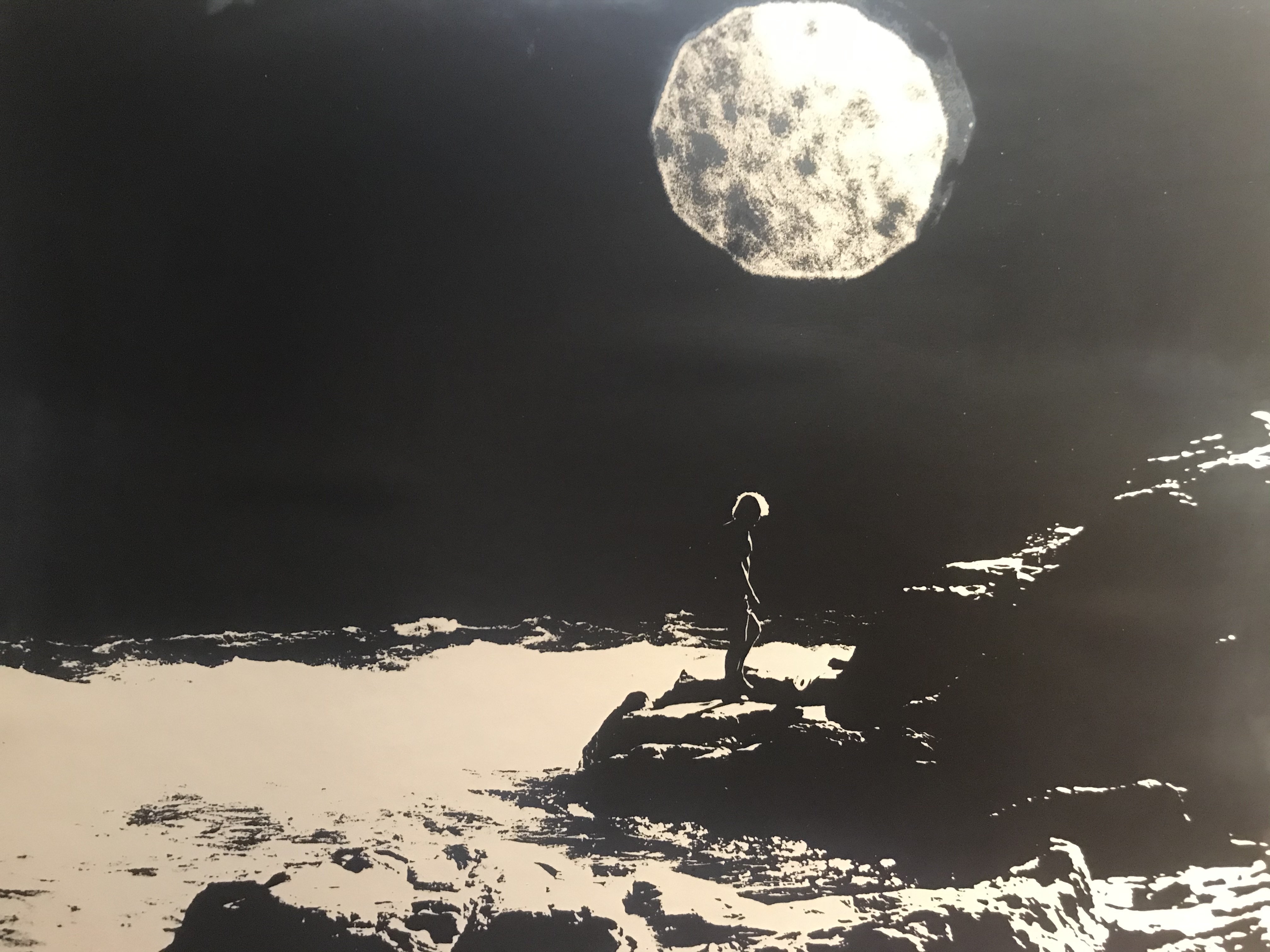 high-contrast photo of my nutty friend climbing around the bottom of the Grand Canyon